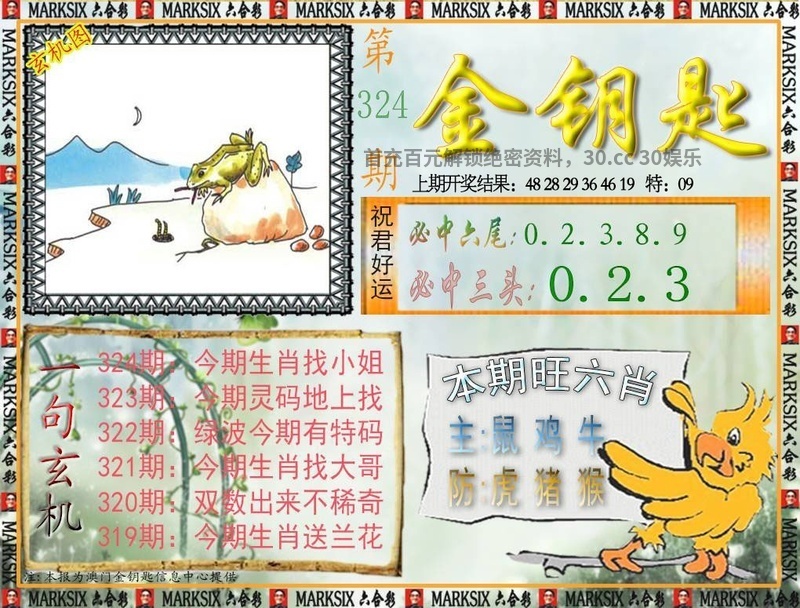 324期:六肖【鼠狗兔猴牛猪】开兔15准 325期:六肖【牛猴兔龙羊猪】开虎04错 326期:六肖【猪兔狗猴龙牛】开猪19准 327期:六肖【马虎鼠狗猴牛】开發00准 高手指路,稳赚秘诀!金钥匙-555174.com! 金钥匙【平特一肖】555174.com